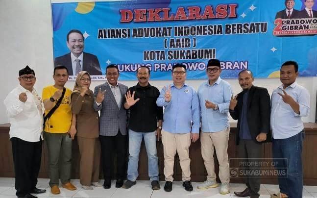 KOTA SUKABUMI (sukabumiNews.id) – Aliansi Advokat Indonesia Bersatu (AAIB) Kota Sukabumi mendeklarasikan dukungannya untuk Calon Presiden dan Wakil Calon Presiden (Capres-Cawapres) 2024, Prabowo Subianto – Gibran Rakabuming Raka.