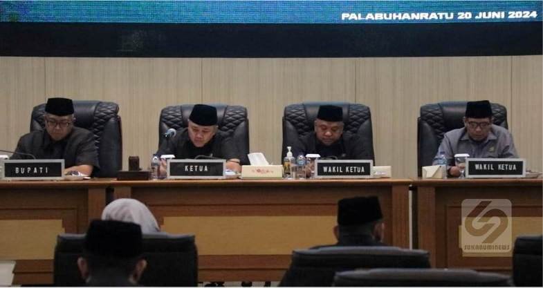 Rapurna dipimpin langsung Ketua DPRD Kabupaten Sukabumi, Yudha Sukmagara di Ruang Rapat Paripurna DPRD Kabupaten Sukabumi, Kamis (20/6/2024), dengan dihadiri Bupati Sukabumi H Marwan Hamami dan Forkopimda.