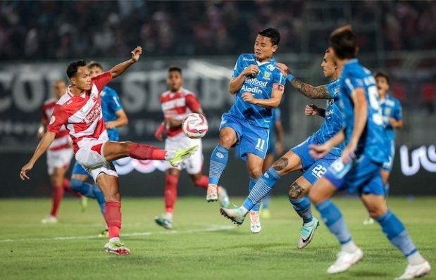 Jacob Mahler kembali menguji gawang Persib melalui tembakannya di menit ke-14, namun Kevin Mendoza dengan sigap menghentikan peluang tersebut.