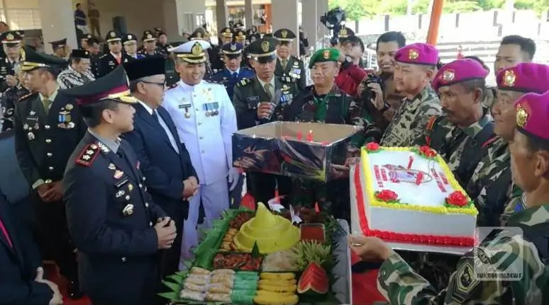 Usai mengikuti upacara, Danpuslatpurmar 6 Antralina, Mayor Marinir Ahmad Yani M.Tr.Opsla., memberikan Surprize berupa Kado Kue Ulang Tahun kepada Kapolres Sukabumi AKBP Tony Prasetyo Yudhangkoro S.H., S.I.K., M.T.